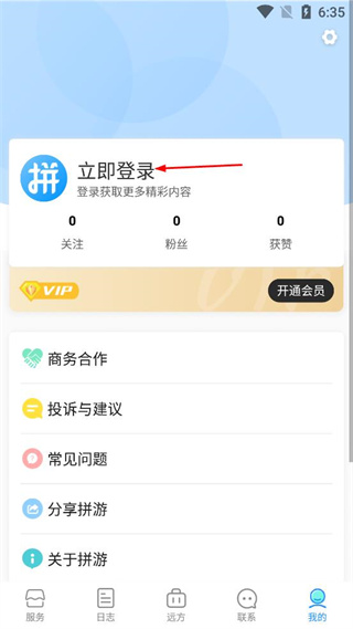 2、在个人页面中找到立即登录选项,点击该选项进入拼游的登录界面。