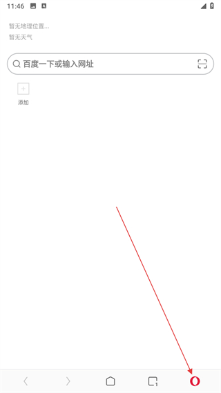 1、打开欧朋浏览器应用,进入主页面后,点击页面底部右侧的功能按钮。