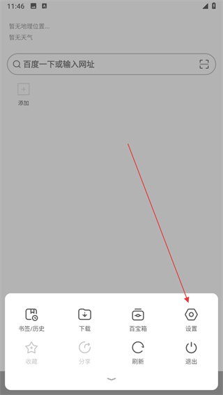 2、在弹出的功能菜单中,点击设置选项,进入欧朋浏览器的设置页面。