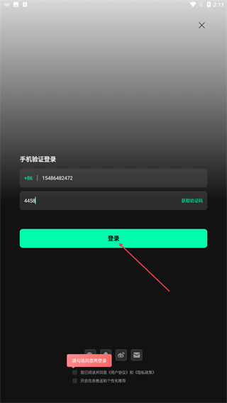 3、将收到的验证码输入其中后,点击登录的按钮即可。