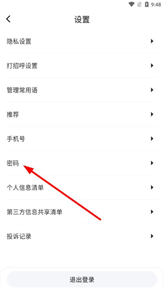 3、在设置界面里,选择密码选项,进入修改密码页面。
