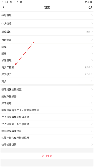 4、进入设置的界面内,点击青少年模式的功能按钮。