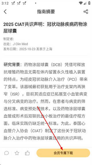 3、 在指南摘要页面点击底部会员专属下载,完成指南书的下载。