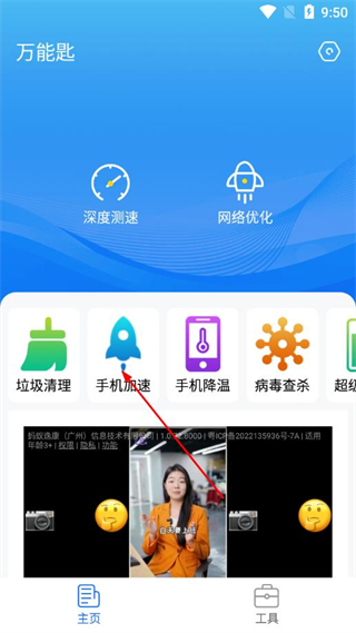 1、打开万能匙app首页,找到并点击垃圾清理,进入垃圾清理的扫描页面。