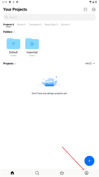 1、打卡vn视频剪辑,进入时点击底部人像的图标。