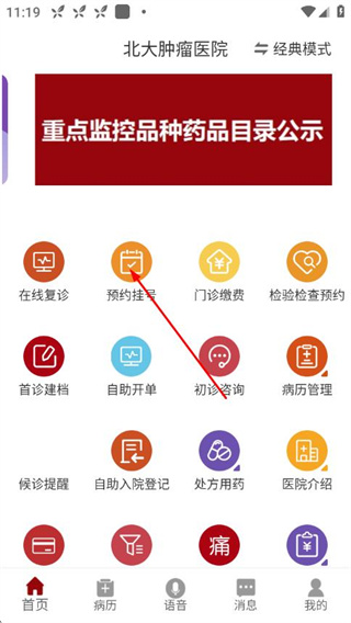 1、打开北大肿瘤医院app首页,点击预约挂号选项。