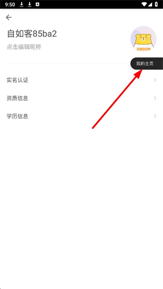 3、在个人信息页面,点击右上角我的主页选项,进入个人主页查看信息。