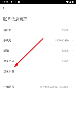 3、在该页面点击登录设备选项,进入账号常用设备与登录记录页面。