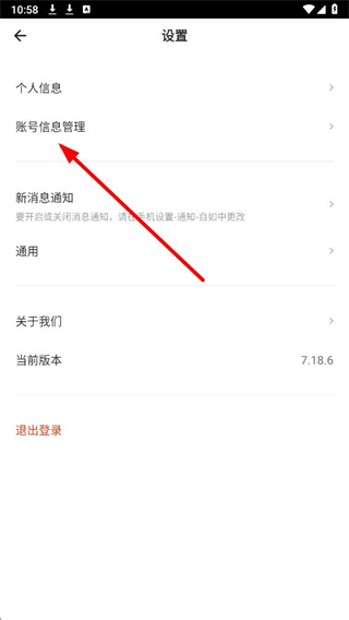 2、在设置界面中,选择账号信息管理选项,进入账号信息管理页面。