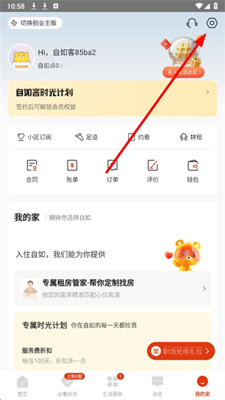 1、进入自如应用,在我的家页面,点击右上角的设置选项,进入设置界面。