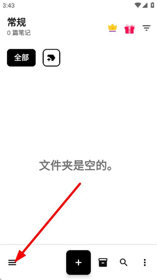 1、打开时光笔记App,点击页面左下角的菜单按钮。