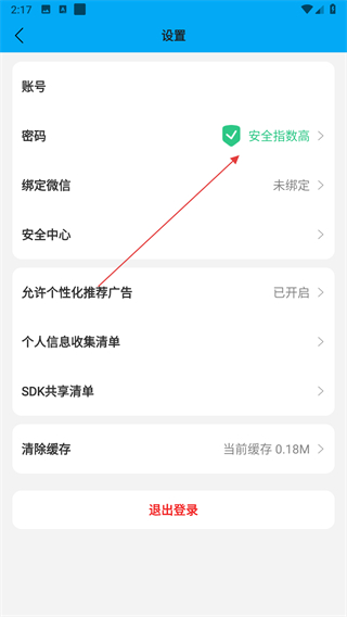 3、在设置界面中,找到密码选项,点击该选项进入修改密码的操作页面。