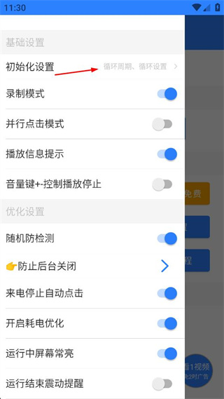 3、在设置页面找到初始化设置选项,点击该选项,进入对应的详细设置界面。