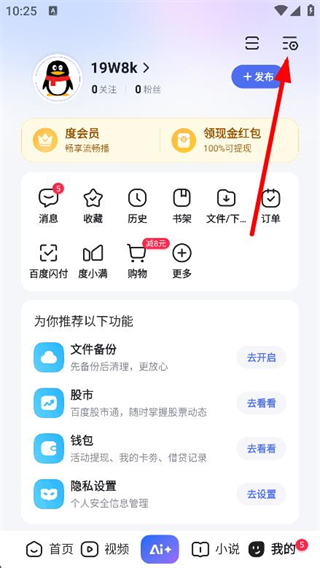 1、打开百度APP,点击右下角我的选项。