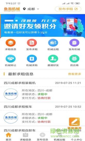 鱼泡机械软件是一款非常好用的机械租赁服务手机app,用户可以在线发布机械信息以及求租信息,也可以进行转让和购买服务,每天都有消息更新,交易方便,该软件提供丰富的机械租赁和二手交易信息,方便用户实时获取最新行业资讯,并与专业客服在线交流,以解决机械使用过程中的各种问题。欢迎有需要的朋友到绿色资源网下载使用!