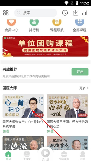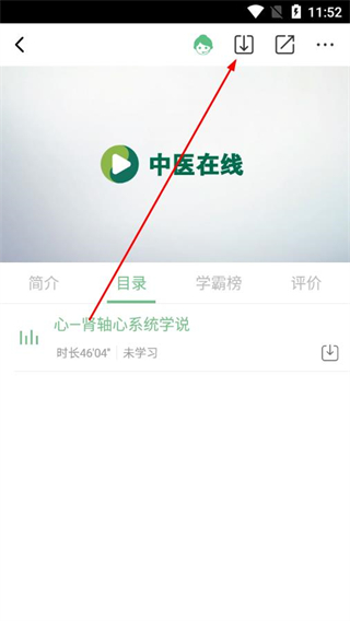 1、打开中医在线,在学习页面选择想要下载的课程,点击进入课程详情页。