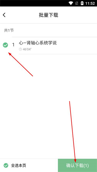 3、在批量下载页面,勾选目标课程,点击确认下载即可完成视频下载。