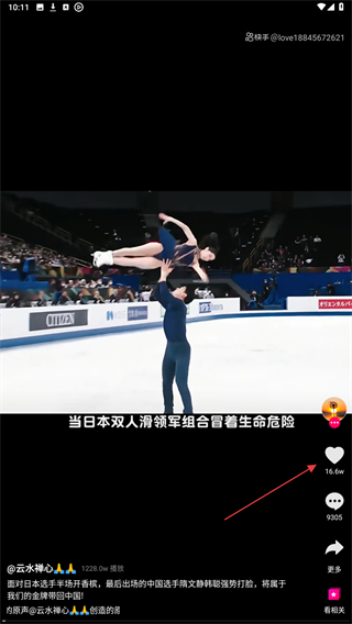 3、在短视频播放的页面内,点击爱心的图标即可点赞成功。