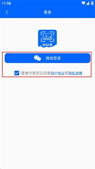 3、在登录界面勾选同意相关协议的选项,点击微信登录完成账号登录操作。
