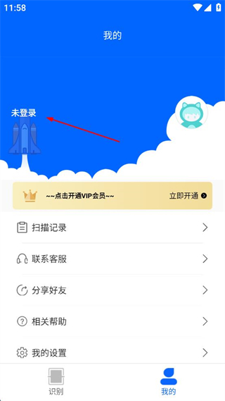 1、打开OCR扫描助手应用,点击界面底部的我的选项,进入个人中心页面。