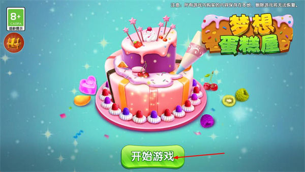 1、进入梦想蛋糕屋界面,点击开始游戏按钮,进入店铺相关的操作页面。