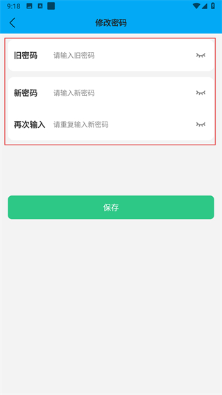 4、依次输入旧密码、新密码及确认新密码,完成后点击保存按钮。