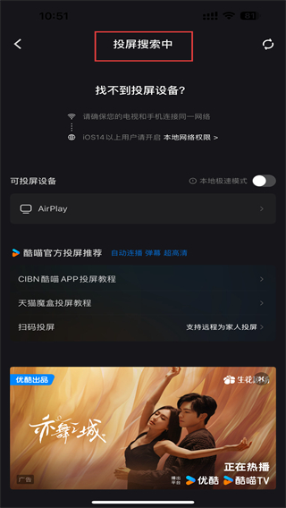 4、在投屏搜索中,选择并点击要投屏的设备即可。