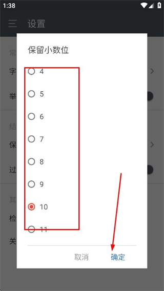 3、在设置页面,点击保留小数位选项,弹出保留小数位选择框。