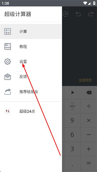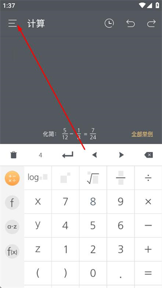 1、打开超级计算器app,找到并点击左上角的菜单图标。