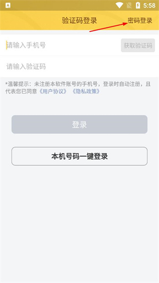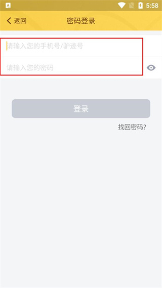 3、在密码登录页面,找到手机号输入框,输入对应的手机号,再找到密码输入框填入登录密码。