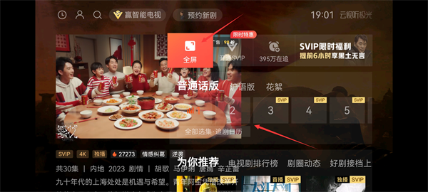 4、进入播放界面,可以点击全屏进入全屏播放模式,以及各种电视剧简介、剧集选择等都在这里。