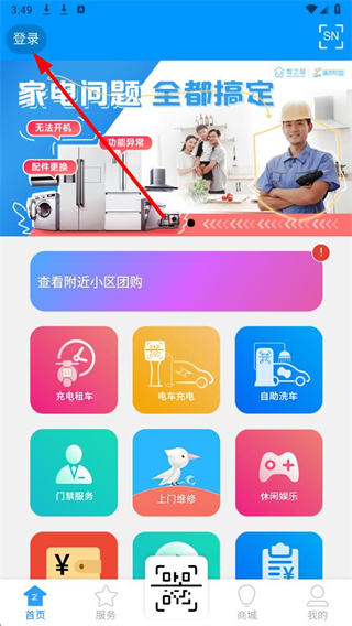 1、打开智之屋APP,在首页左上角,找到登录按钮并点击,进入登录相关页面。