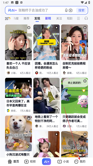 1、打开百度APP,进入首页后点击底部右侧的我的选项,进入个人中心页面。