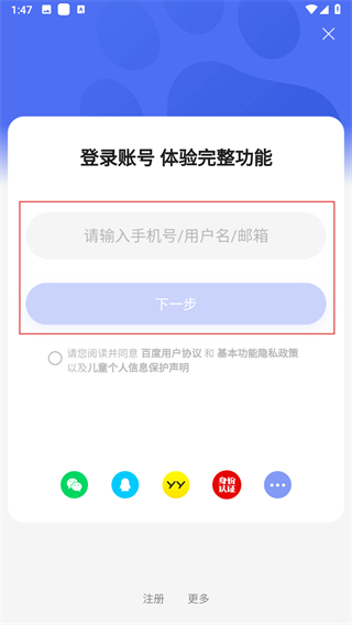 3、在登录窗口的输入框中填写要登录的手机号,勾选同意相关协议后点击下一步。
