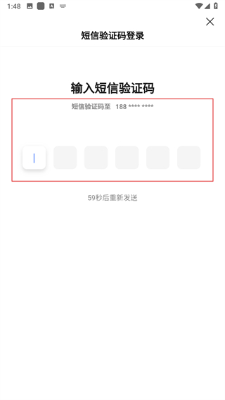 4、进入短信验证码登录页面,输入收到的短信验证码,即可完成手机号登录操作。