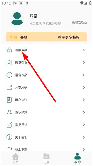 2、进入我的页面后,找到并点击清除数据选项。