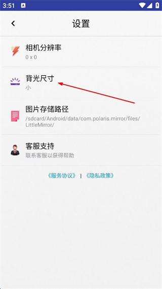 3、在设置页面点击“背光尺寸”选项,弹出背光尺寸选择窗口。