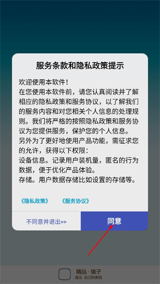 1、在服务条款和隐私政策提示界面点击“同意”,进入软件主界面。