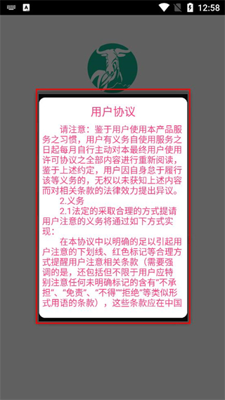 4、登录后查看弹出的用户协议内容,了解相关条款信息,完成登录后的操作衔接。