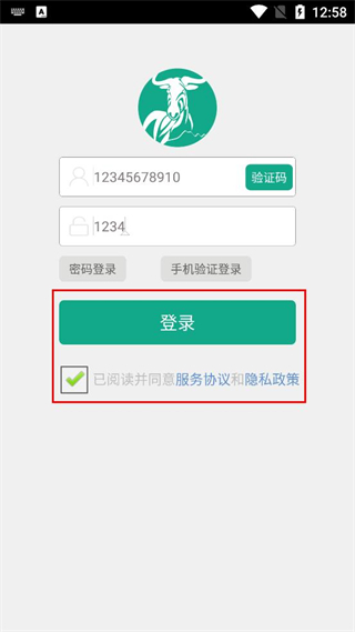 3、填写收到的验证码,勾选已阅读并同意的选项,点击界面中的登录按钮。