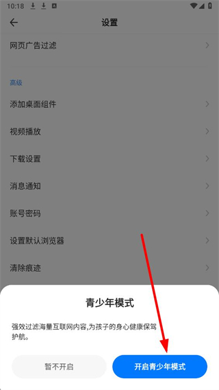 4、在弹出的青少年模式确认框中,点击开启青少年模式按钮,即可完成该模式的开启。