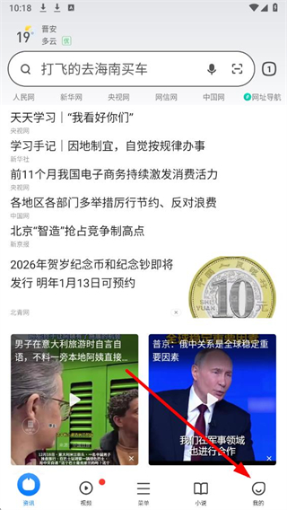 1、打开360浏览器app,点击底部我的选项,进入我的个人股页面。