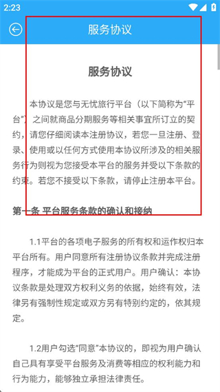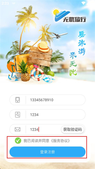 3、勾选我已阅读并同意服务协议选项,点击登录注册按钮,若需查看协议可进入详情页面浏览。