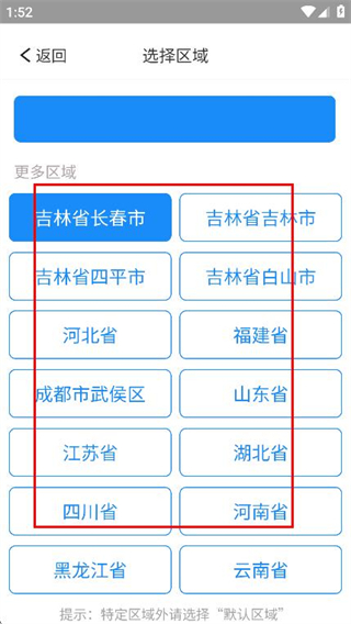 1、打开慧知行小学版,在登录页面点击选择区域。