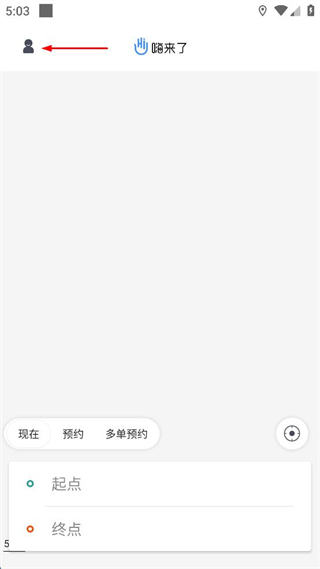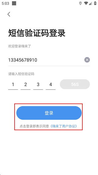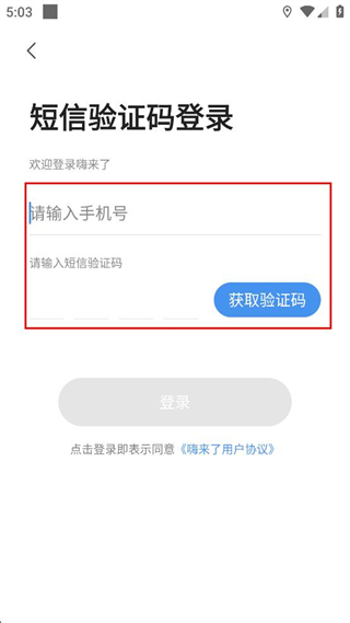 1、打开嗨来了软件,点击页面左上角的头像选项,进入短信验证码登录界面。