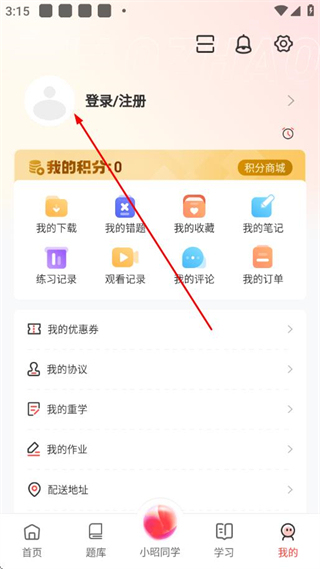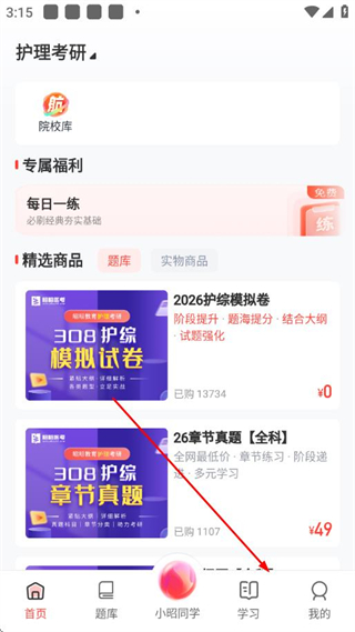 1、在昭昭医考app的首页,点击底部我的选项,进入个人中心页面。