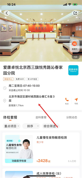 3、进入该分院详情页面,即可查看对应的医院地址信息。