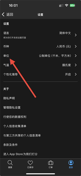 3、在设置页面中,找到单位选项并点击,进入单位选择的设置界面。