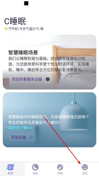 1、在C-Life睡眠app的首页,点击底部我的选项,进入个人中心页面。