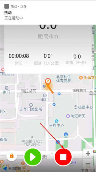 3、运动结束后,点击页面底部的红色停止,完成本次运动记录。